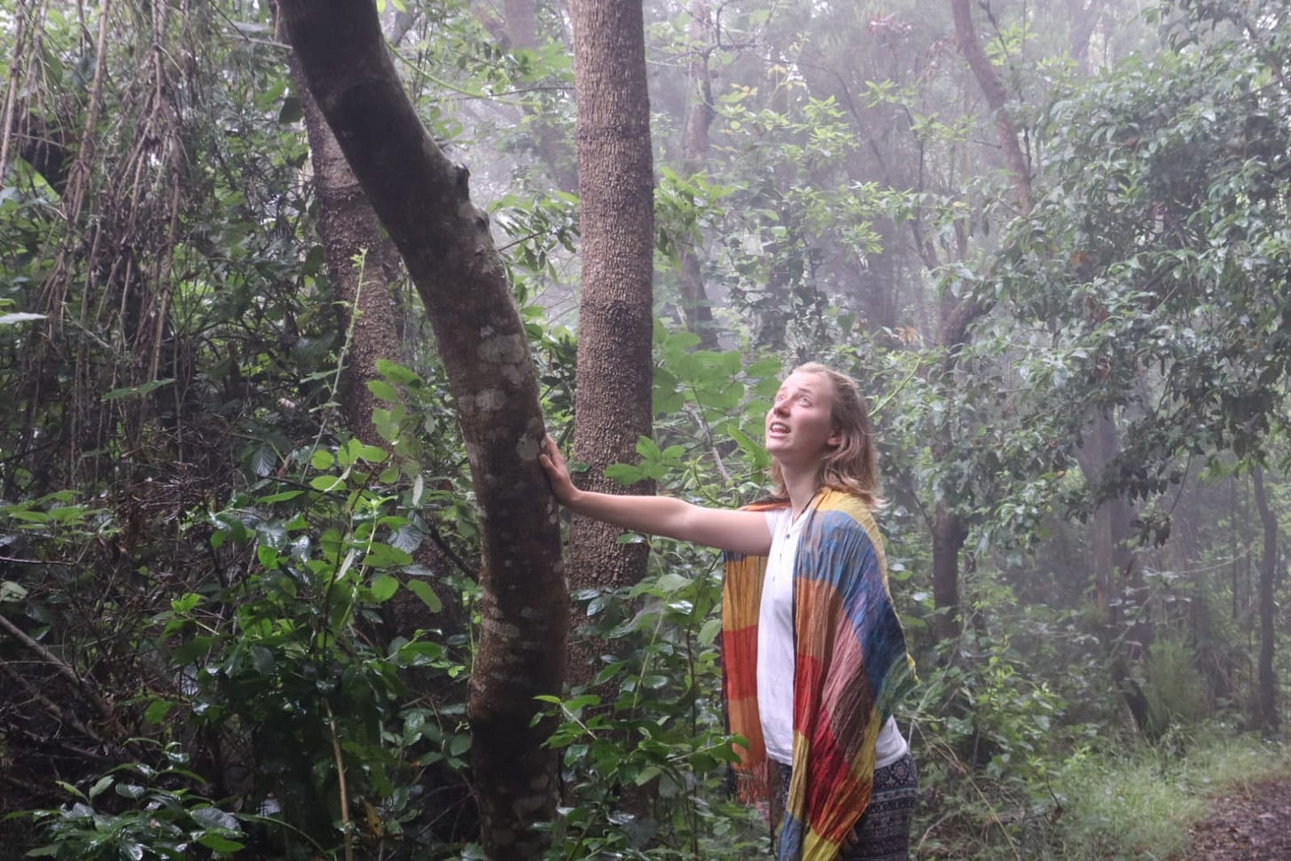 We finally arrived at the forest. We are inside a cloud. The forest here — a fairy forest, straight out of a fairytail. The forest here is alive, it breathes, it thrives. It has space. The forest here makes me want to cry, to run, to dance, to sing, and to laugh. It raises in me a wave of emotions. This forest is home to countless creatures. This forest is also part of my home. Here, I don’t need answers. I don’t need clarity. I don’t need to know, to be precise, to work, or to try. I don’t need anything. Just to be.